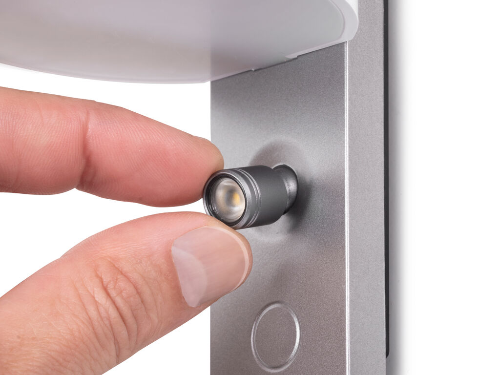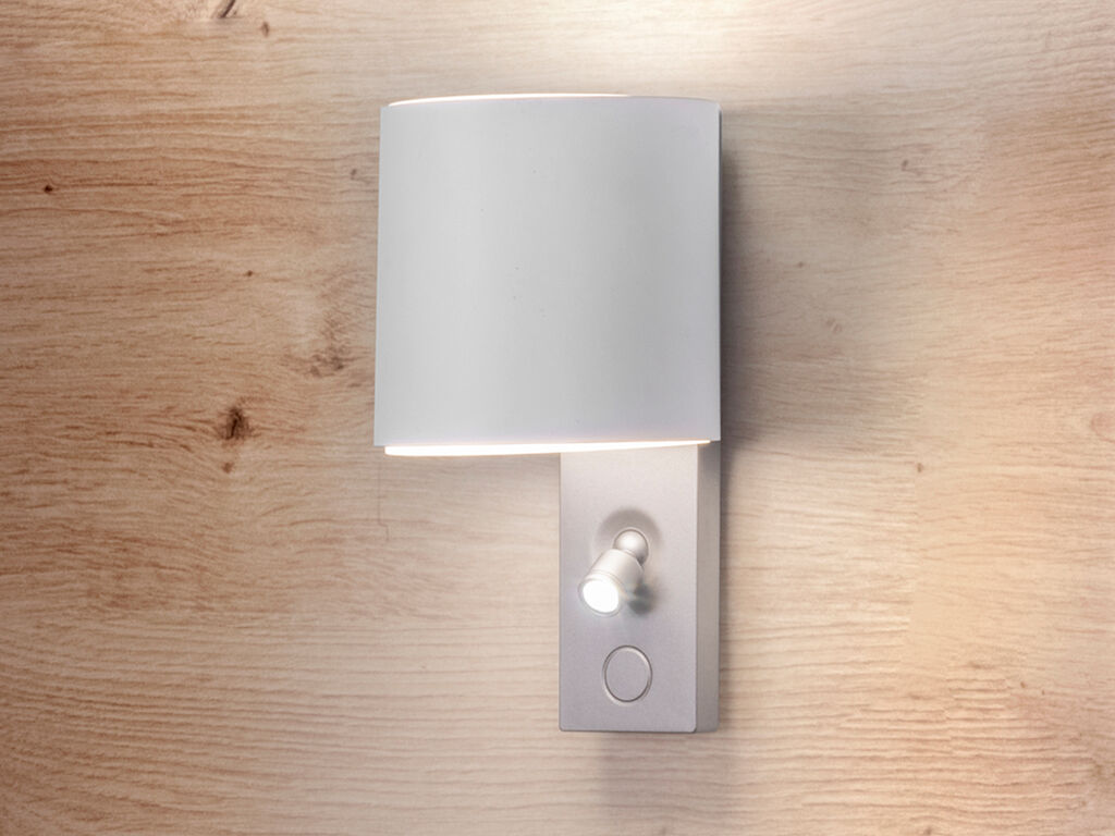 Interruptor táctil con dos funcionamientos: pulsación breve para luz principal y pulsación prolongada para proyector de lectura